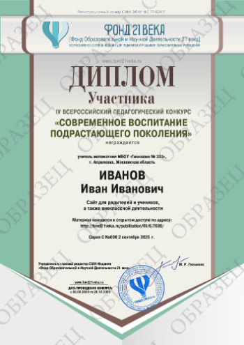 4. Если Вам необходимо документальное подтверждение участия / результата участия в конкурсе, Вы можете заказать изготовление электронного диплома. Эскизы документов, для увеличения нажмите на диплом: