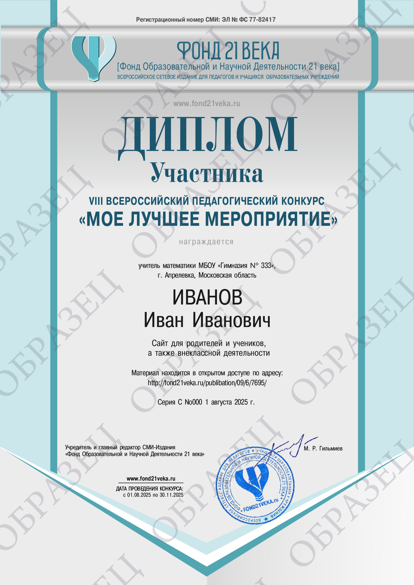 С уважением, администрация издания «Фонд Образовательной и Научной Деятельности 21 века»