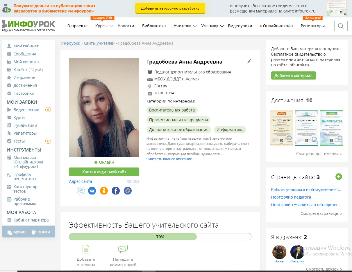 Главная / Публикация в СМИ / ДОПОЛНИТЕЛЬНОЕ ОБРАЗОВАНИЕ / Иное / Сайт педагога дополнительного образования: https://infourok.ru/user/gradoboeva-anna-andreeevna