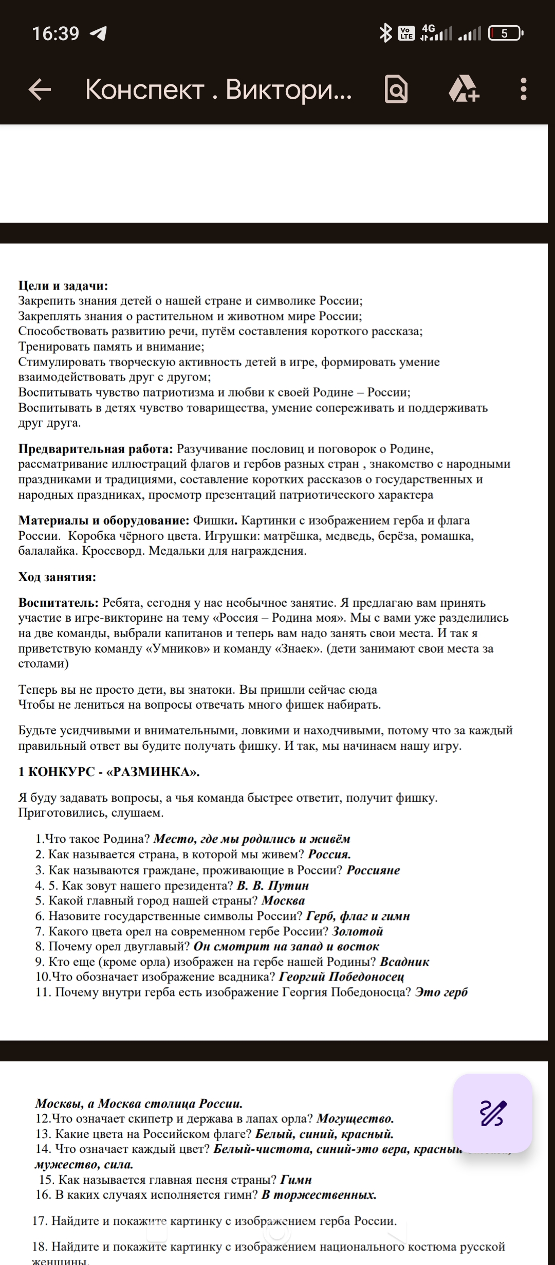 Игра-викторина "Россия - Родина моя"