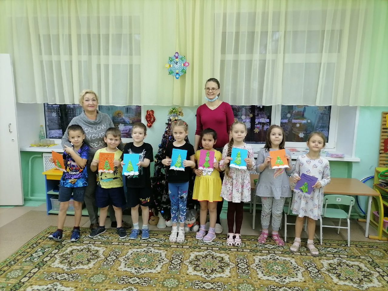 Фото отчет. Мастер - класс по изготавливанию новогодней елки с детьми и родителями. Использовали цветную бумагу, клей, стразы, картон цветной.