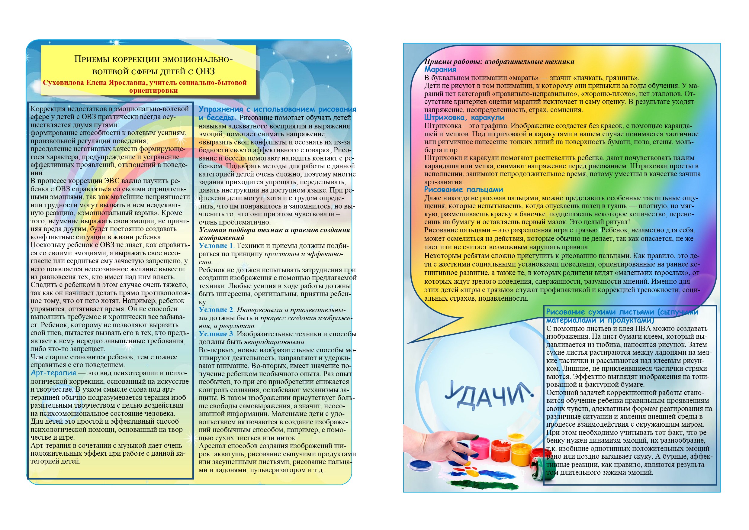 Приемы коррекции эмоционально-волевой сферы детей с ОВЗ