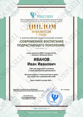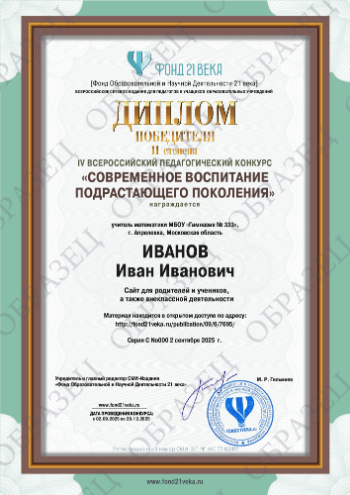 4. Если Вам необходимо документальное подтверждение участия / результата участия в конкурсе, Вы можете заказать изготовление электронного диплома. Эскизы документов, для увеличения нажмите на диплом: