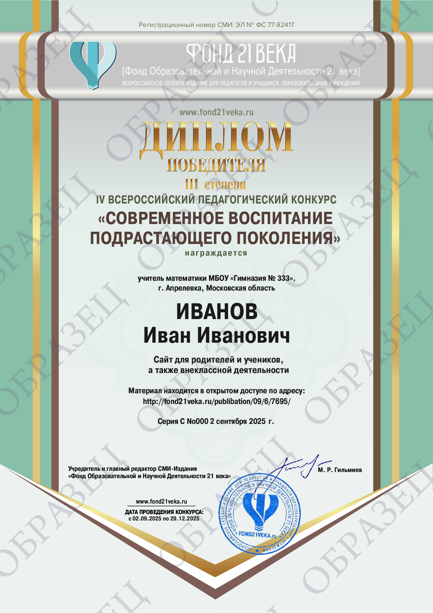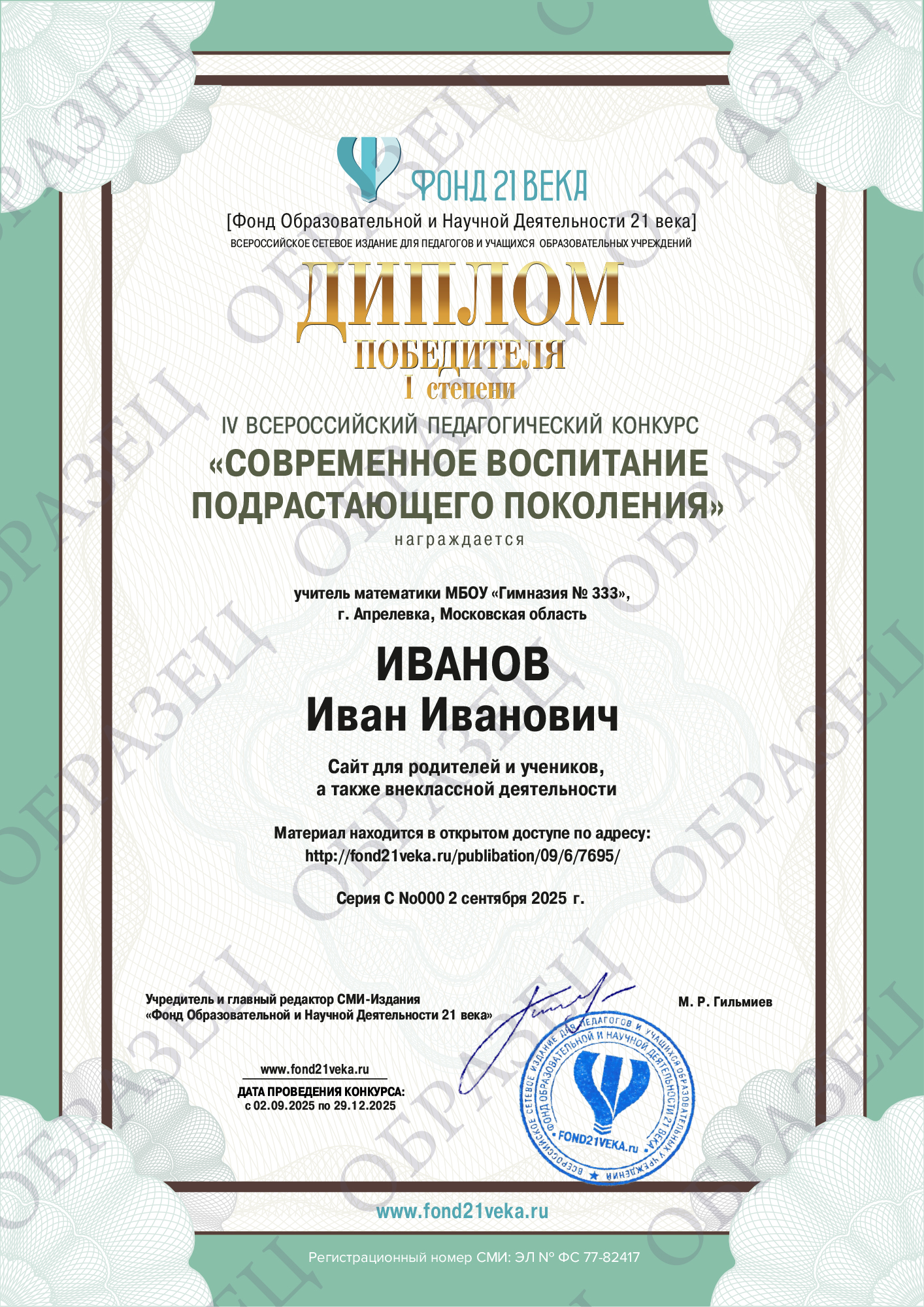4. Если Вам необходимо документальное подтверждение участия / результата участия в конкурсе, Вы можете заказать изготовление электронного диплома. Эскизы документов, для увеличения нажмите на диплом: