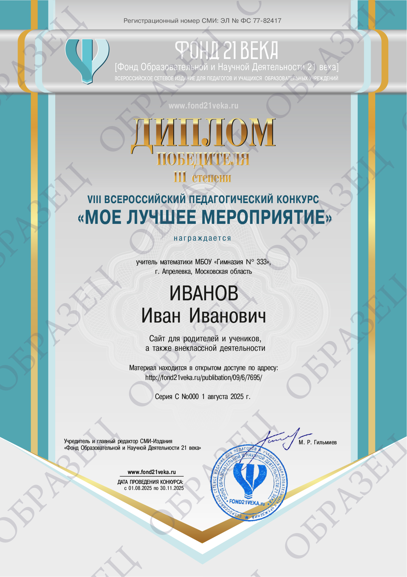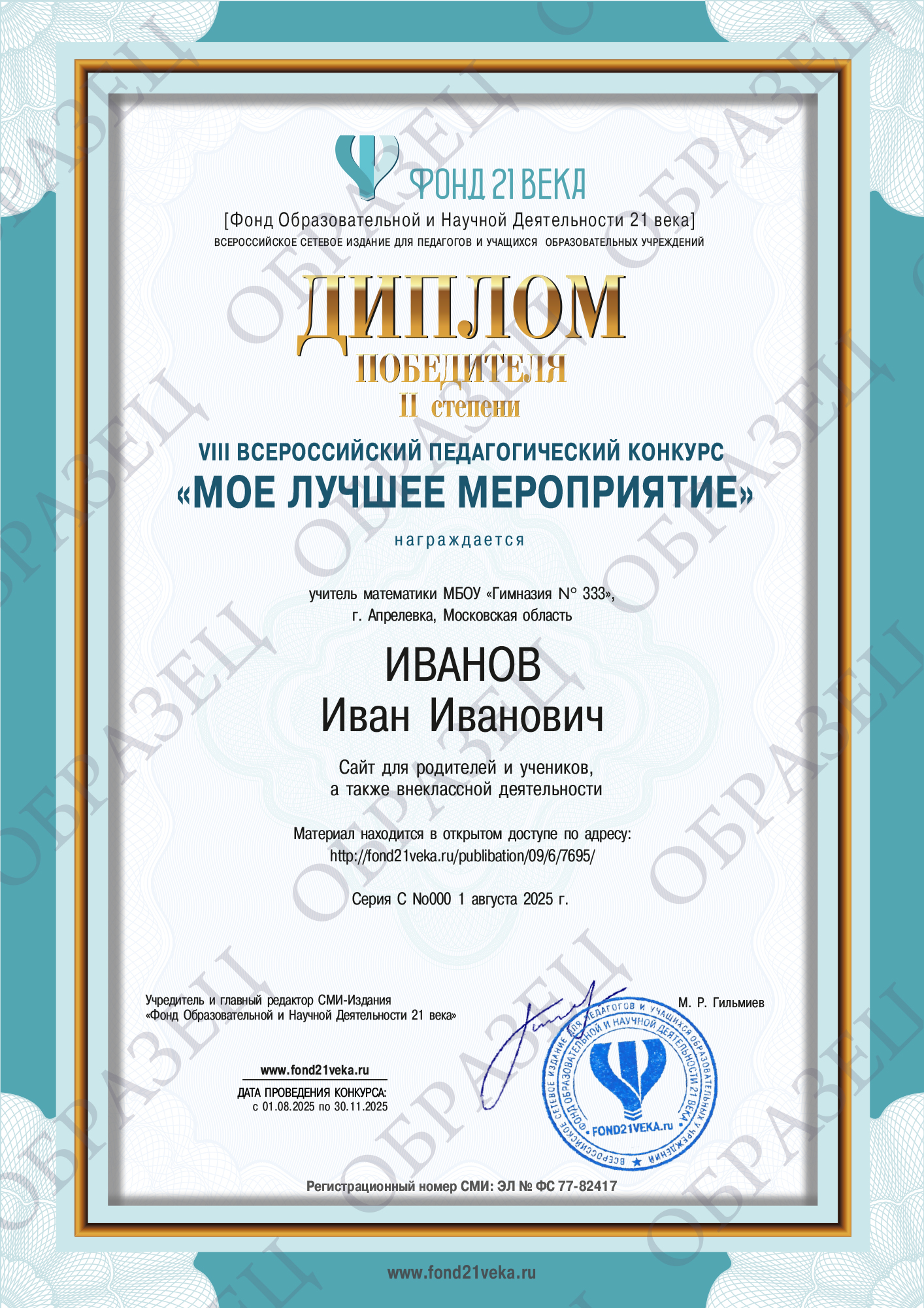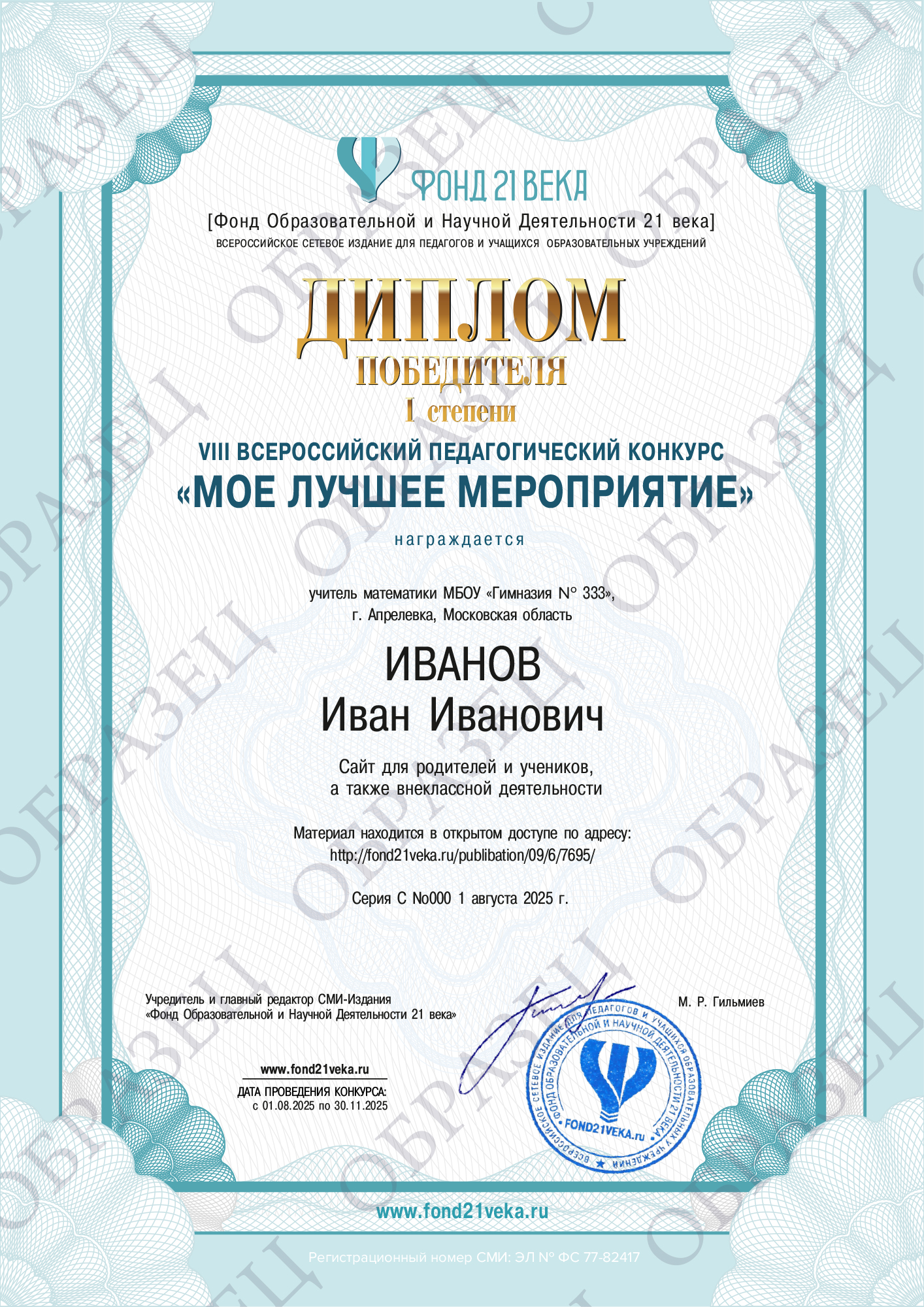 С уважением, администрация издания «Фонд Образовательной и Научной Деятельности 21 века»
