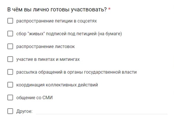 В ходе опроса студентам и преподавателям предлагают разные способы участия в акции. Скриншот анкеты