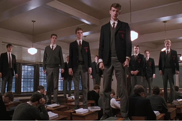 Кадр из фильма «Общество мёртвых поэтов», в котором преподаватель литературы учит школьников свободе самовыражения