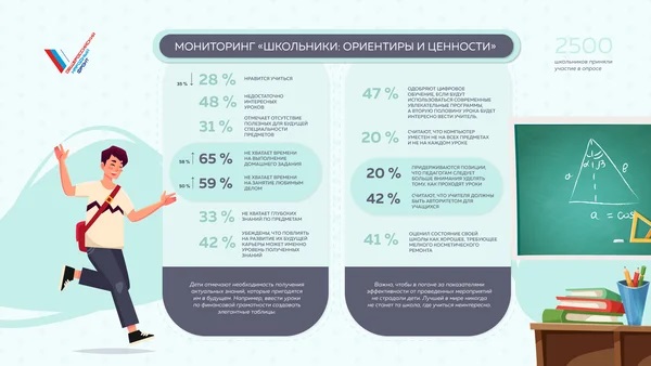 Общественный народный фронт провел мониторинг и узнал, что количество детей, которым не нравится учиться в школе, увеличилось за последний год. По данным организации, их число достигло 72%. В исследовании приняли участие примерно две с половиной тысячи подростков в возрасте от 13 до 18 лет.