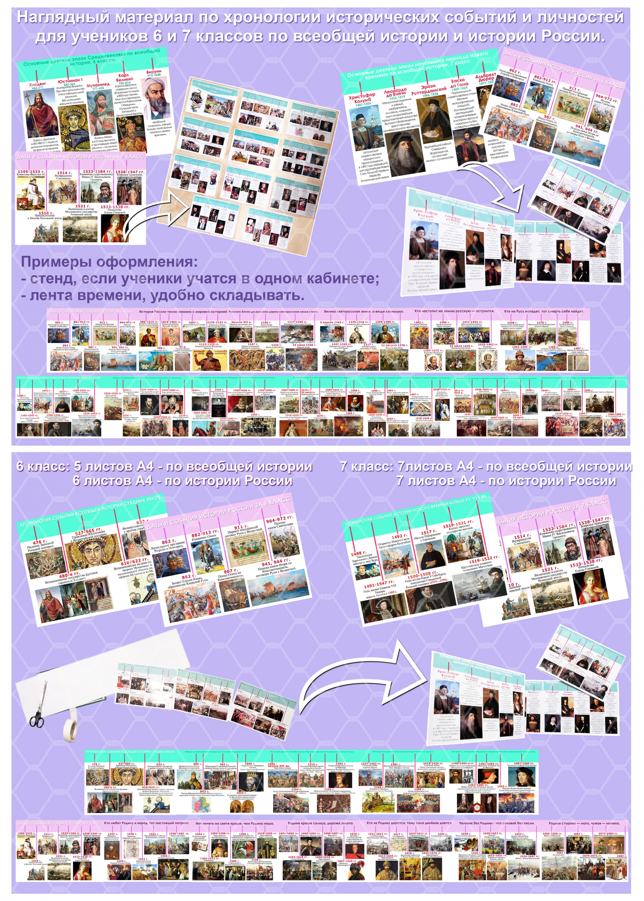 Наглядный материал по хронологии исторических событий и личностей для своих учеников 6 и 7 классов по всеобщей истории. Материал можно использовать для подготовки к ВПР и ОГЭ (все даты взяты из кодификатора по подготовке к экзамену).