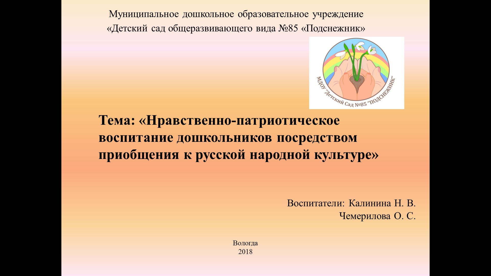 Мы считаем, что раскрытие личности в ребёнке полностью возможно через включение его в культуру и историю собственного народа, через знакомство его с природой родного края, народным творчеством, русскими народными праздниками, традициями и обычаями.http://transfiles.ru/8jjil