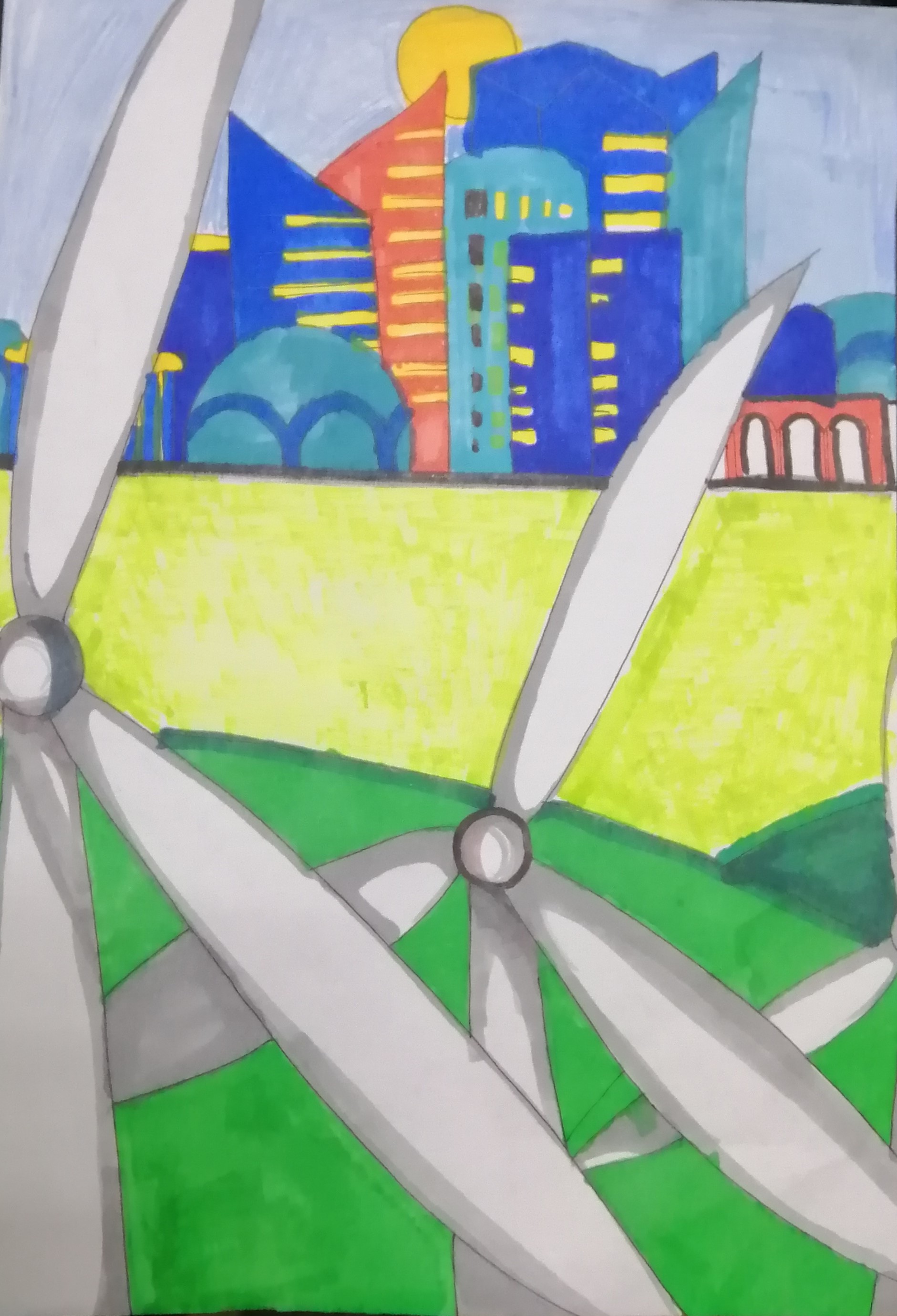 Рисунок, отражающий экологические проблемы и возможные пути улучшения городской среды обитания.