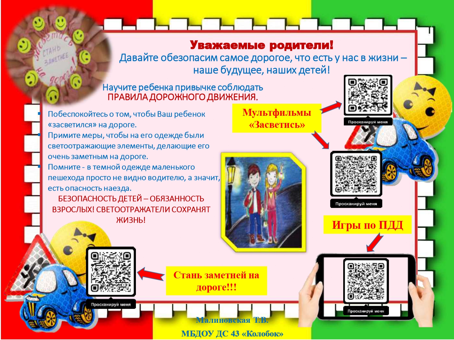 Интерактивная памятка для родителей "Световозвращатели сохранят жизнь" с использованием QR - кодов.