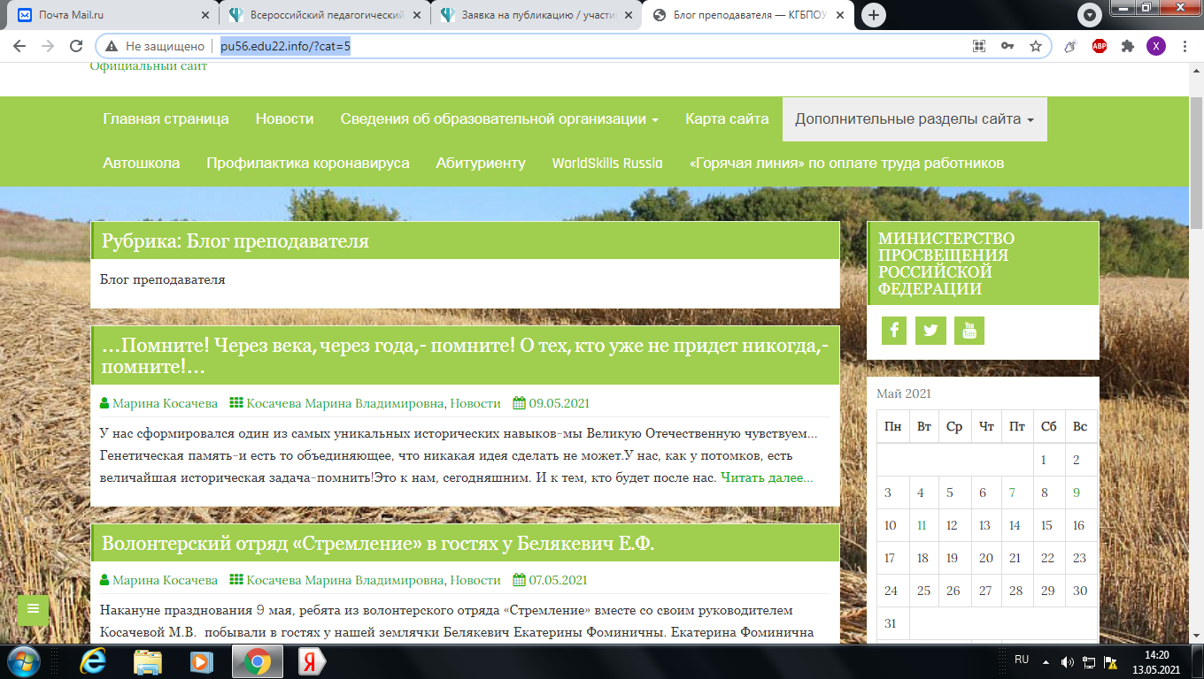 Рубрика "Блог преподавателя": http://pu56.edu22.info/?cat=5